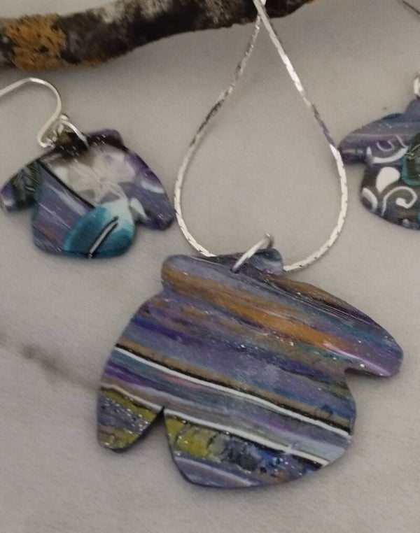 Get ready for sweater weather! This charming necklace and earring set features a cozy sweater design, handcrafted in beautiful shades of blue. It's the perfect way to add a touch of playful charm to your fall and winter outfits. "pearl necklace included, lol!
