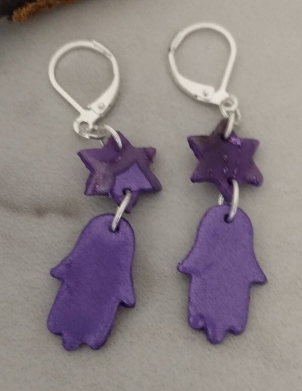 Embrace ancient symbolism with these beautiful Hamsa and Star of David Earrings. Handcrafted in vibrant blue polymer clay, they offer a stylish way to carry symbols of protection and faith with you wherever you go.
