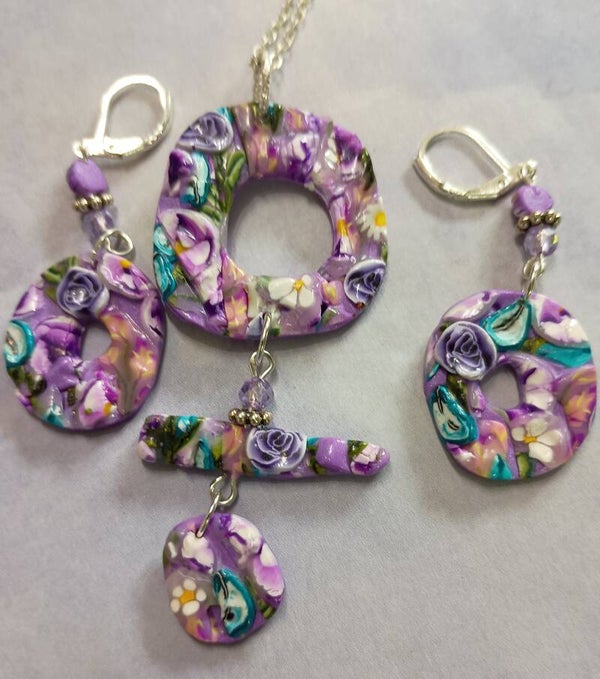 "Step into a world of vibrant color and elegant design. Our handmade purple polymer clay jewelry is created to add a unique pop of style to any outfit. The pieces are very lightweight and designed to be perfect for everyday wear, combining the rich, captivating tones of lavender and violet with a delicate, artistic form. Whether you're dressing up for a special occasion or simply accenting your daily look, this jewelry set is a wonderful way to express your creativity and grace."