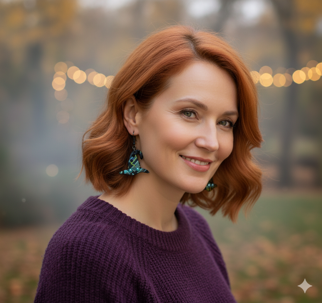 Add a touch of whimsical magic to your look with our handmade polymer clay "Enchanted Hat" Drop Earrings! These playfully sculpted witch hat earrings feature a vibrant, artistic blend of blues, greens, and blacks, accented with shimmering details. Very lightweight and perfect for everyday wear, they bring a charming, mystical flair for women aged 35-65.