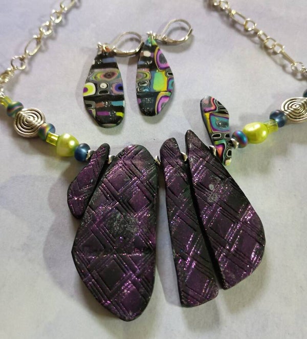 Unlock maximum style versatility with the "Nexus Prism" Reversible Necklace Set! As a key piece in our Nexus Collection, this statement set features unique, modular polymer clay pieces showcasing an abstract, kaleidoscopic design in electric neon and deep jewel tones. The necklace is fully reversible, giving you two distinct looks in one. It is very lightweight and perfect for everyday wear, offering an eye-catching, high-impact piece for women aged 35-65.