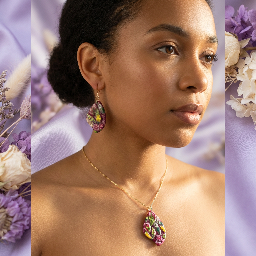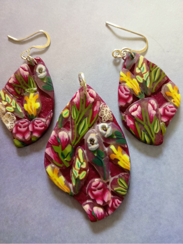 The Story Behind the Set There is beauty in every single slice. This unique statement set was handcrafted using the "ends" of my floral canes—the tiny, precious pieces that hold the most intricate details. Instead of letting them go to waste, I’ve brought them together into a vibrant, one-of-a-kind mosaic that celebrates the Polymer clay Zen philosophy of honoring every part of the creative process.